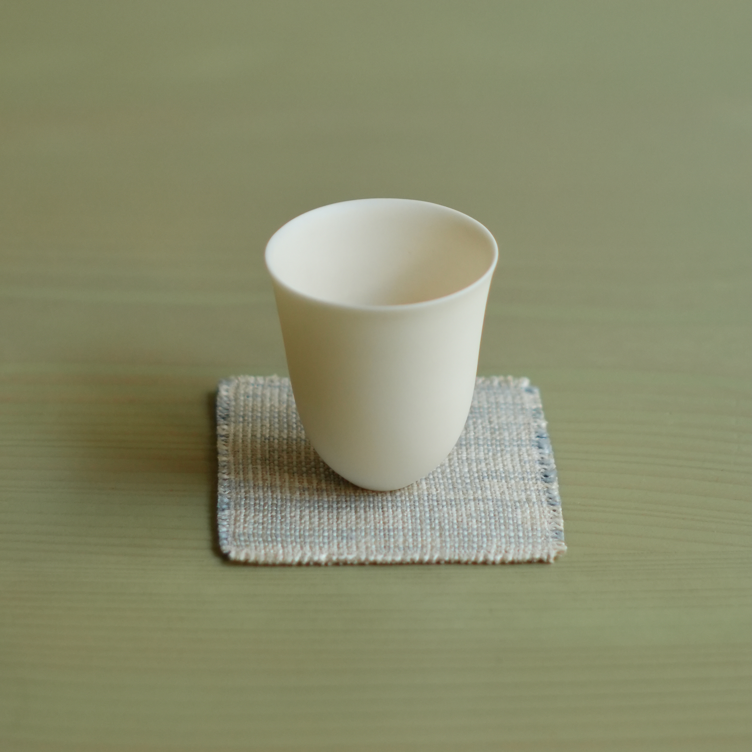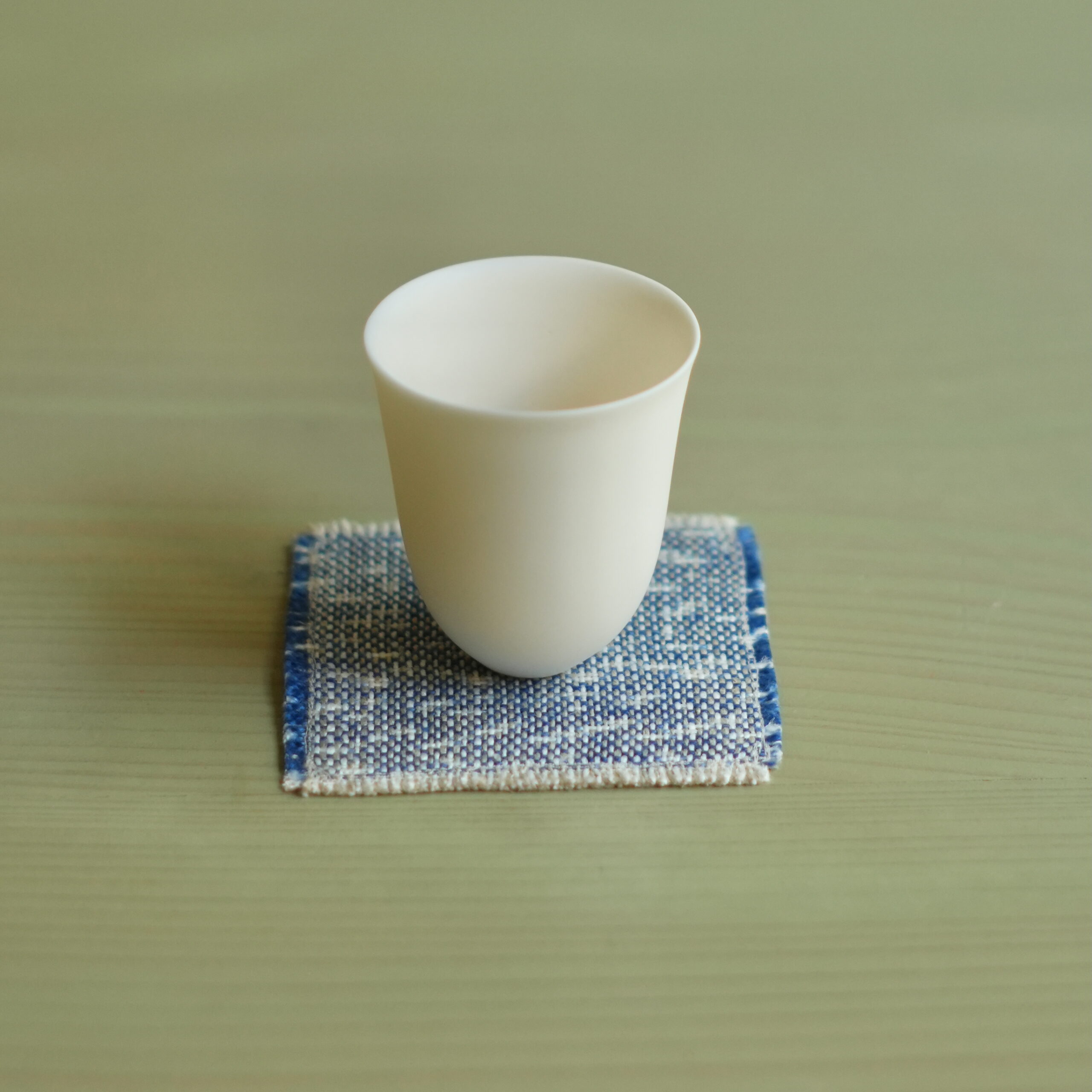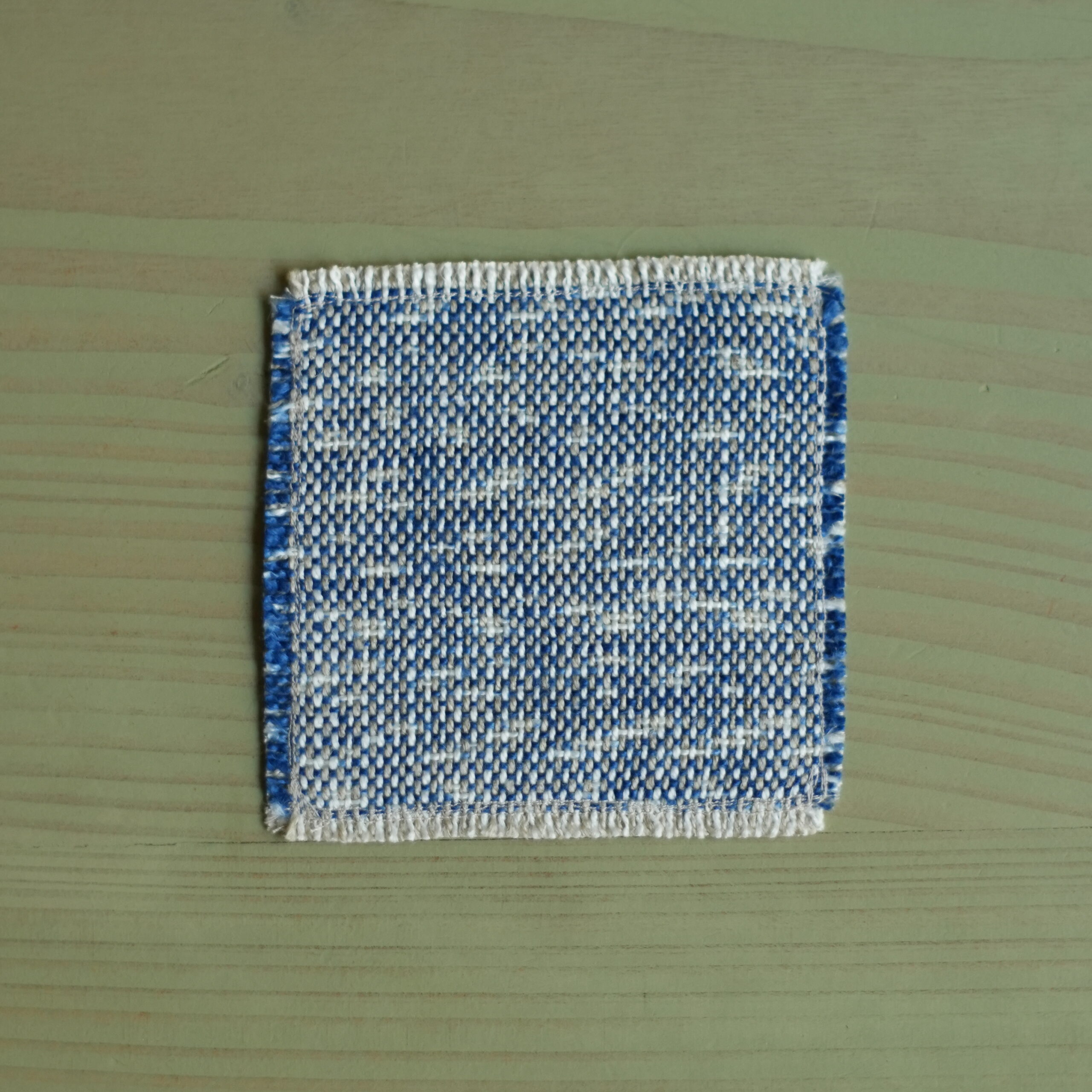 Created as a soft coaster for teacups, with a double layer of colour – light blue thread on one side and dark blue thread on the other.